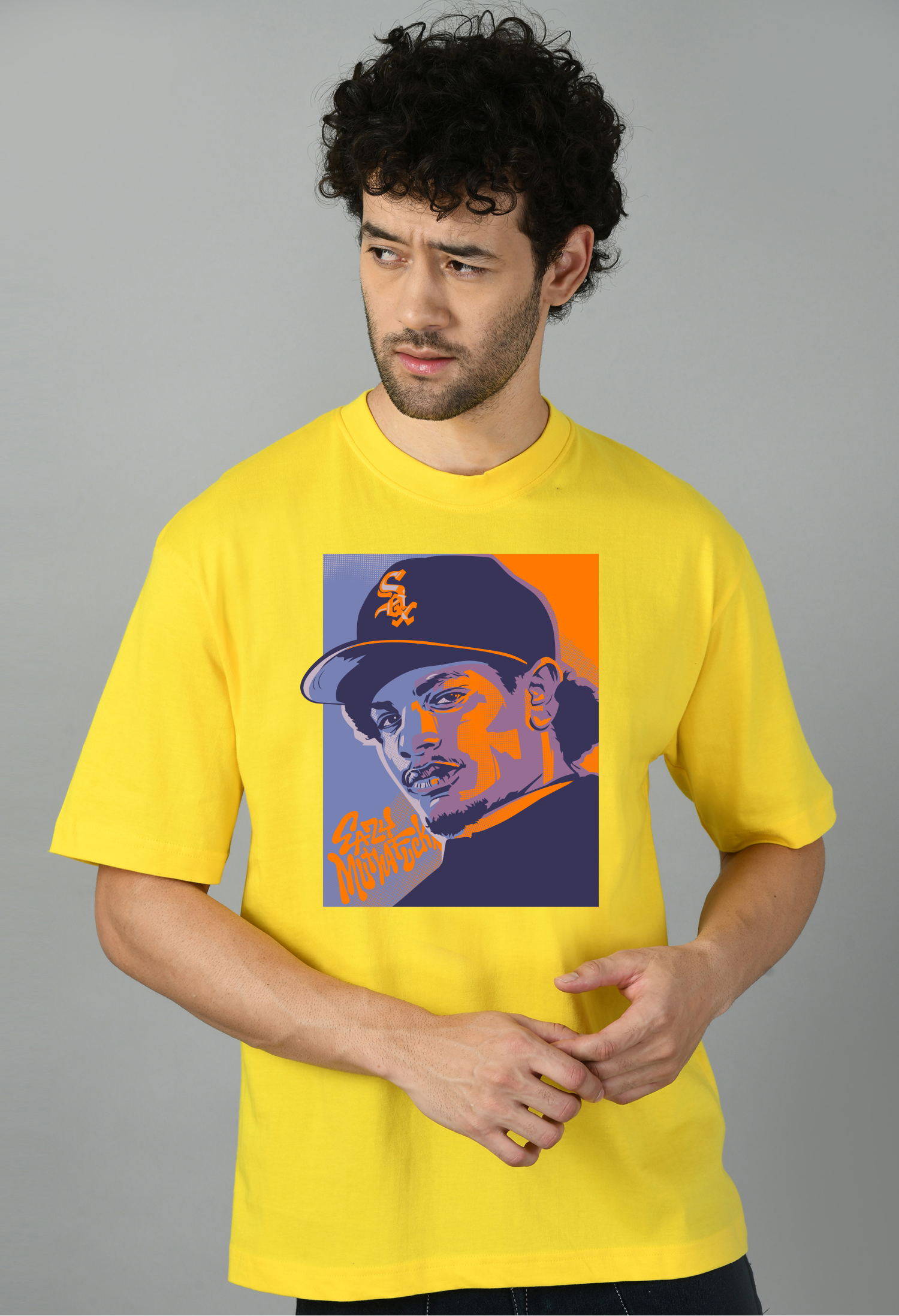 The 50 Cent 90s Style Hip Hop Oversized T-shirt for Men by Quesla is a nostalgic and stylish homage to the golden era of hip hop. This oversized t-shirt features a bold graphic print of 50 Cent, capturing the essence of 90s hip hop culture with its vibrant colors and retro design elements. Made from premium, soft cotton fabric, it offers a comfortable and breathable fit perfect for everyday wear. The t-shirt is primarily black, allowing the striking graphic to stand out prominently. Its relaxed, oversized fit provides a trendy and laid-back look, ideal for casual outings, streetwear fashion, or music events. With high-quality material and durable stitching, this t-shirt ensures both longevity and standout style. Whether you're a dedicated fan of 50 Cent or appreciate the 90s hip hop scene, this t-shirt is a must-have piece for expressing your musical tastes and fashion-forward sensibilities.